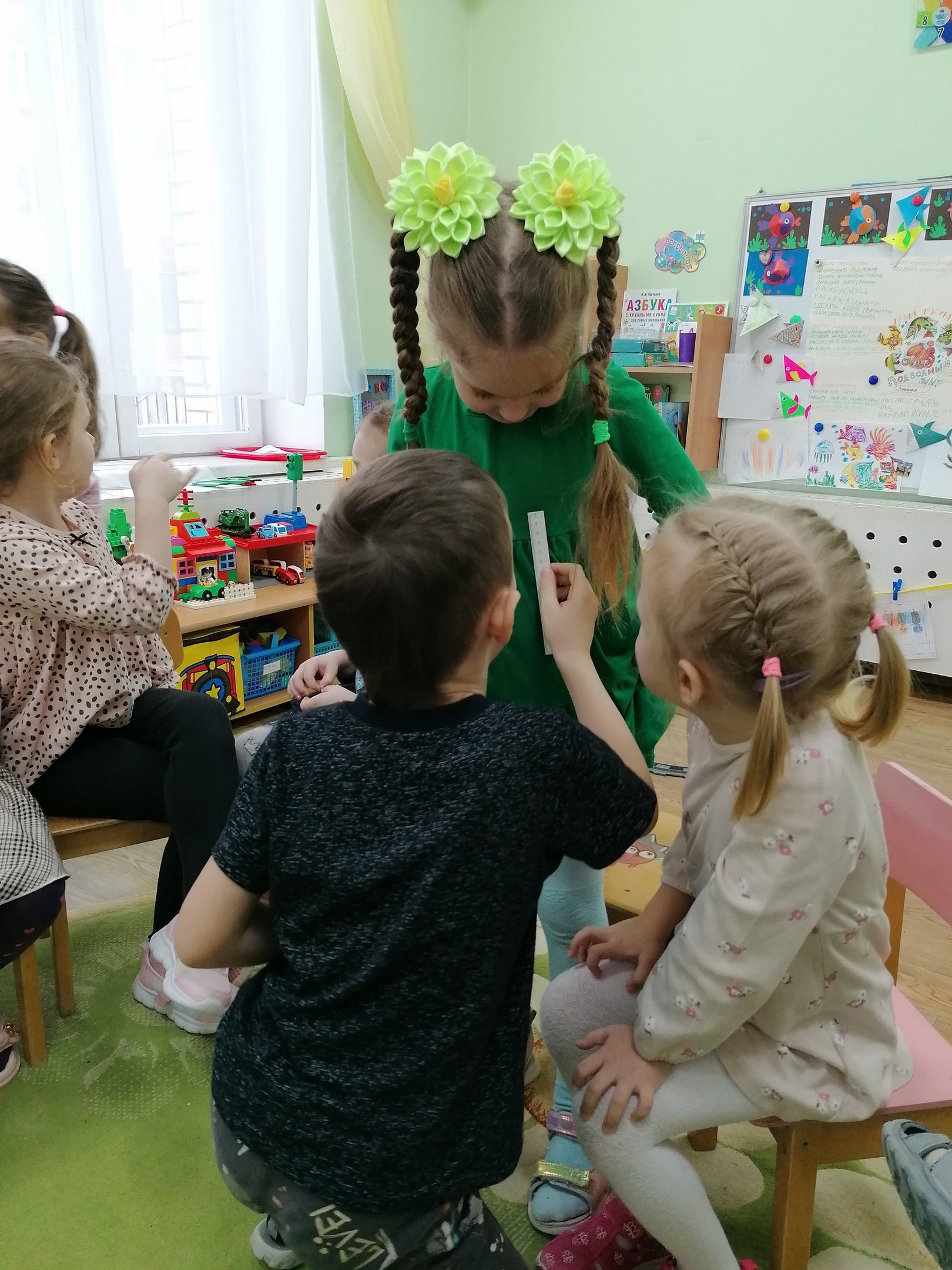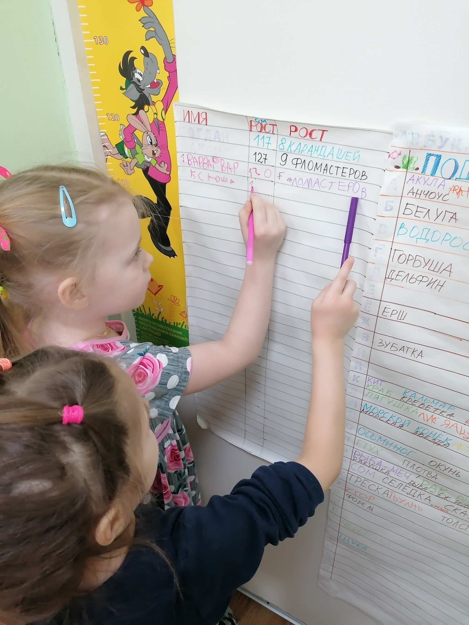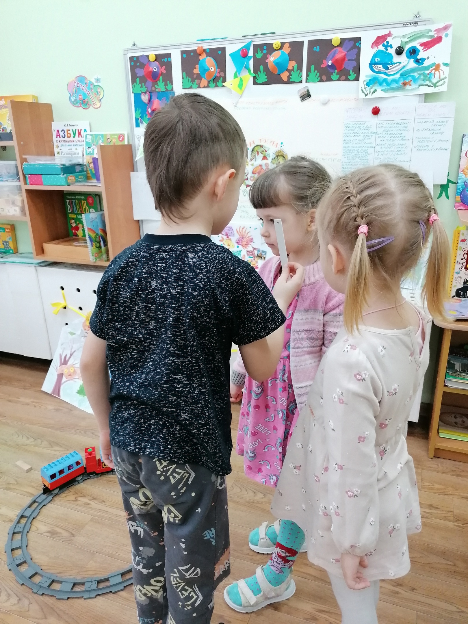 Поскольку дети ещё не умеют сравнивать большие количества, путём пересчёта, то для сравнения их по высоте они используют прозрачные тубы. Дети помещают в тубы определённое количество фишек и ставят тубы рядом, сравнивая количество фишек. Происходит прямое сравнение, без определения количества. (Поместите в тубы определённое количество фишек и поставьте тубы рядом, сравните количество фишек, без определения количества.)